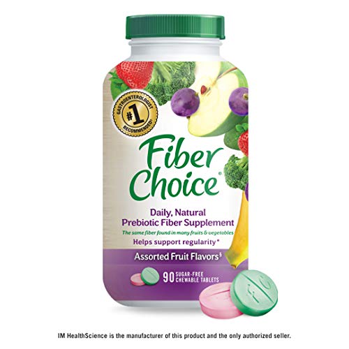 Fiber Choice Daily Prebiotic Fiber Chewable Tablets, Helps Support Regularity, 90 Count Sugar-Free Assorted Fruit