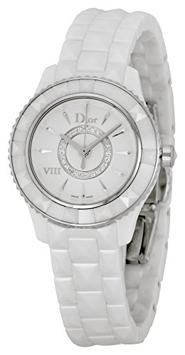 Dior VIII Diamond Silvered Dial White Ceramic Ladies Watch CD1221E2C001