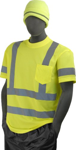 Majestic Glove 75-5305 Birdseye Polyester High Visibility Mesh Short Sleeve T-Shirt with Double Waist Stripes, 5X-Large, Yellow