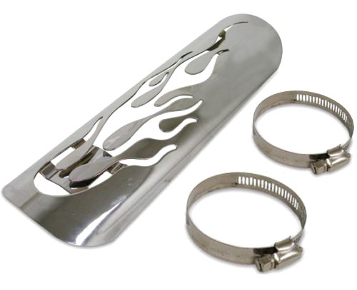 TMS ExCover-KC-Flame 9" Chrome Exhaust Muffler Pipe Heat Shield Cover Heel Guard for Honda Yamaha Suzuki Kawasaki Harley Davidson