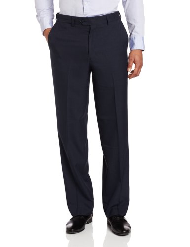 Savane Men's Flat Front Striated Herringbone Dress Pant, Total Eclipse, 36W x 32L