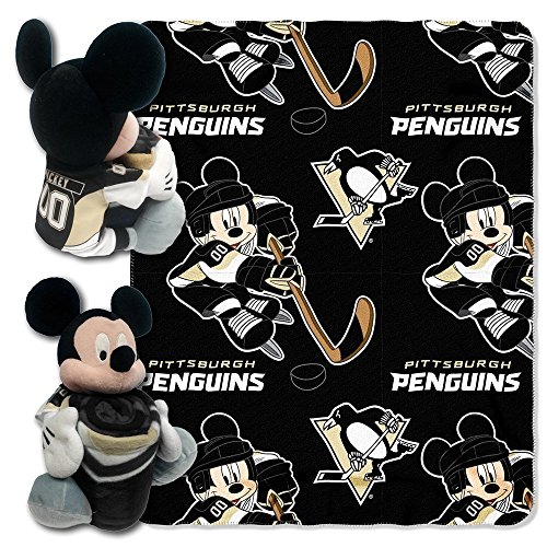 Officially Licensed NHL Pittsburgh Penguins "Ice Warriors" Co-Branded Disney's Mickey Mouse Hugger and Fleece Throw Blanket Set, 40" x 50", Multi Color
