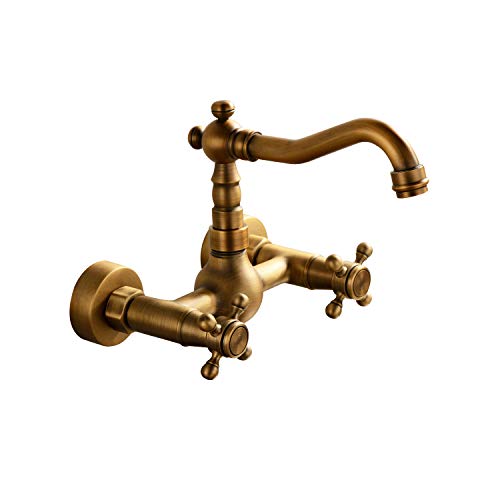 Sprinkle Kitchen Bathroom Faucet Wall Mount Solid Brass Mixer Taps Vintage Curve Tall Spout Antique Brass Finish