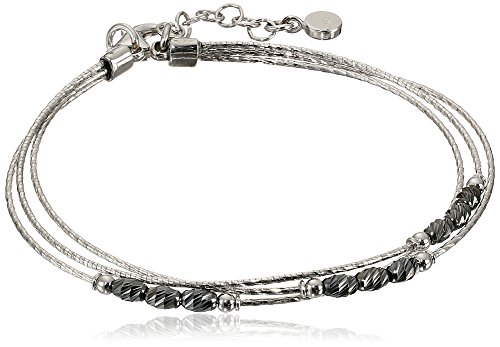 Sterling Silver Rhodium and Black Rhutenium-Plated Oval-Bead Three-Strand Bracelet, 7" with 1" Extender