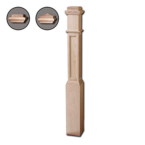 Red Oak 4991 6-1/4 inch Recessed Panel Contemporary Style Wood Box Newel Post for Stair Remodeling