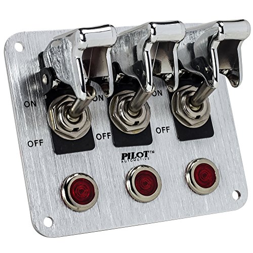 Pilot Automotive PL-SW53CR Performance 3 Row Chrome Safety Cover Toggle Switch with Red Indicator Lights