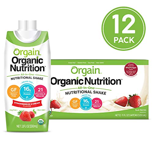 Orgain Organic Nutritional Shake, Strawberries & Cream - Meal Replacement, 16g Protein, 21 Vitamins & Minerals, Gluten Free, Soy Free, Kosher, Non-GMO, 11 Ounce, 12 Count (Packaging May Vary)