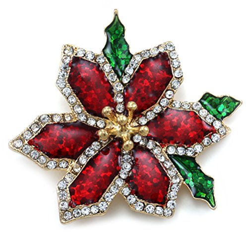 Soulbreezecollection Beautiful Christmas Red Poinsettia Flower Brooch Pin