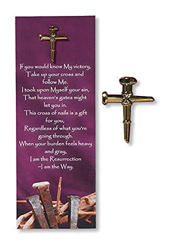 CB Religious Gift Nails of The Cross Follow Me I Am The Way Carded Lapel Pin with Bible Bookmark