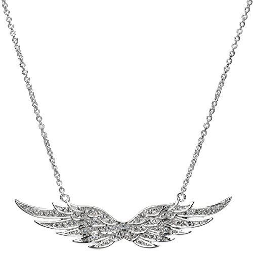 Silvertone and Pave CZ Angel Wing Charm Necklace