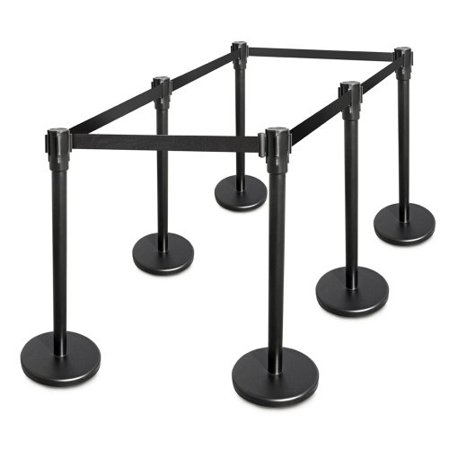New Star Foodservice 54644 Black Coated 36" Stanchion W/6-1/2" Retractable Black Belt, Set of 6