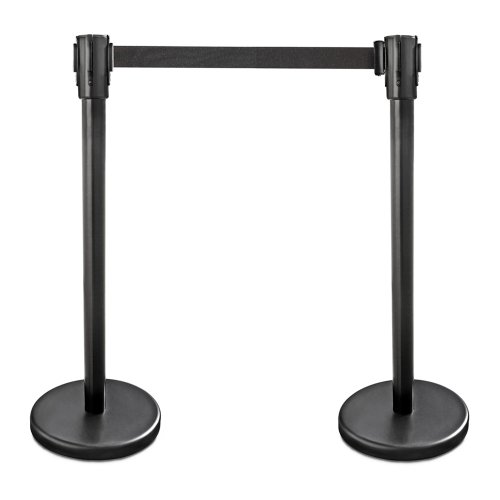 New Star Foodservice 54590 Stanchion, 36-Inch Height, 6.5-Foot Retractable Belt, Set of 2, Black
