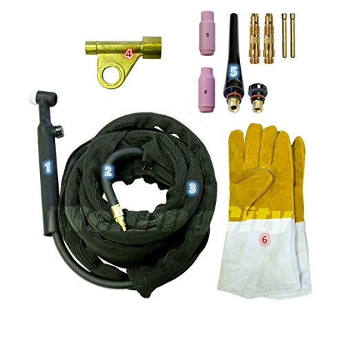 WeldingCity TIG Welding Torch WP-17FV-12R (Flexible/Gas-Valve Head) Complete Ready-to-Go Package Air-Cool 12.5-foot Cable 150Amp w/Gift