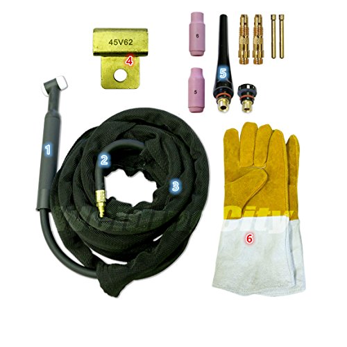 WeldingCity TIG Welding Torch WP-26F-12R (Flexible Head) Complete Ready-to-Go Package Air-Cool 12.5-foot Cable 200Amp w/Gift