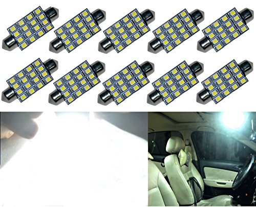 Cutequeen 10pcs White 42mm(1.72") 16-SMD 12V Festoon Dome Light LED Bulbs 211-2 212-2 569 578 - White (pack of 10)