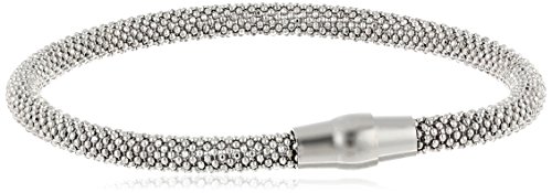 Italian Sterling Silver Rhodium Plated Flexible Popcorn Bracelet Magnetic Clasp, 7.5"
