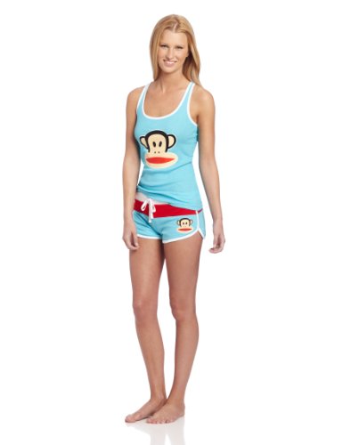 Paul Frank Women's Racer Tank Short Set, Blue/White/Red, Small