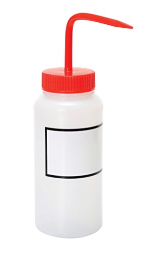 Vestil BTL-WW-16R-LBL Wide Mouth Low Density Polyethylene (LDPE) Round Squeeze Wash Bottle with Label and Red Cap, 16 oz Capacity, Translucent