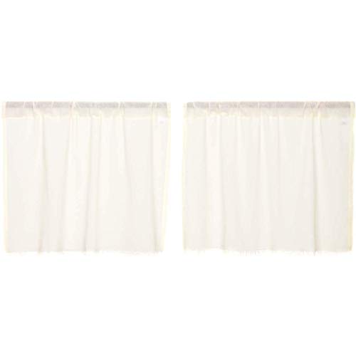 Nancy's Nook Tobacco Cloth Antique White Tier Fringed (set of 2) L24xW36