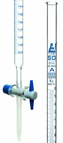 Eisco Labs Borosilicate Burette, Straight Bore, PTFE Stopcock - 50mL Cap, 0.10mL Grad, Class A Tolerance