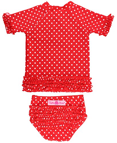 RuffleButts Baby/Toddler Girls Rash Guard 2-Piece Swimsuit Set - Red Polka Dot Swimsuit with UPF 50+ Sun Protection - 18-24m