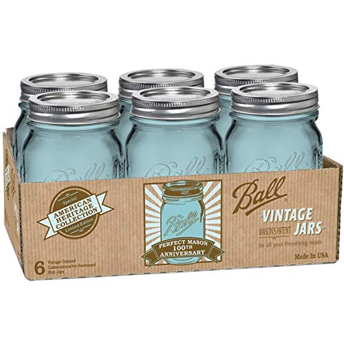 Ball Jar Heritage Collection Pint Jars with Lids and Bands, Blue, Set of 6