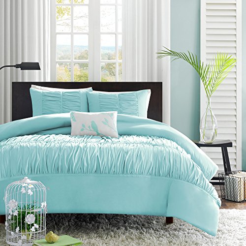 Mi Zone Mirimar Duvet Cover Full/Queen Size - Aqua , Pleated Ruched Ruffles Duvet Cover Set – 4 Piece – Ultra Soft Microfiber Light Weight Bed Comforter Covers