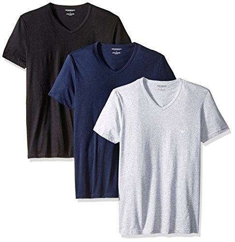 Emporio Armani Men's Cotton V-Neck Undershirts, 3-Pack, Black, Small