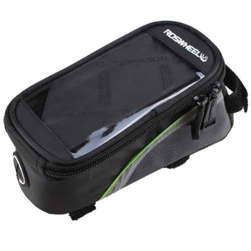 AGPtek® Green Bigger Size Roswheel Waterproof Bicycle Cycling Frame Pannier Front Tube Bag (Including Headphone Jack and Clear PVC Window Pouch for 4.2 inch Cell Phone, Reflective Strips for Safe Night Riding)