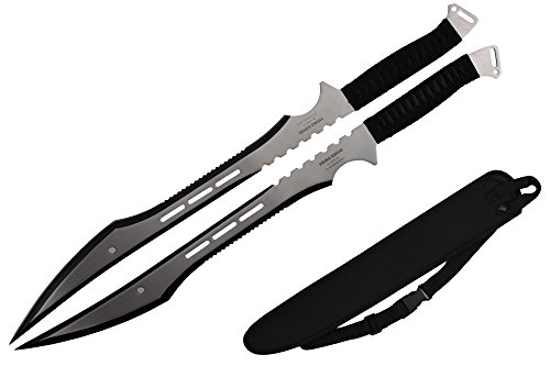 27" Overall Dual Full Tang Blade Ninja Machete Set Wrapped Handle (Black & Silver)