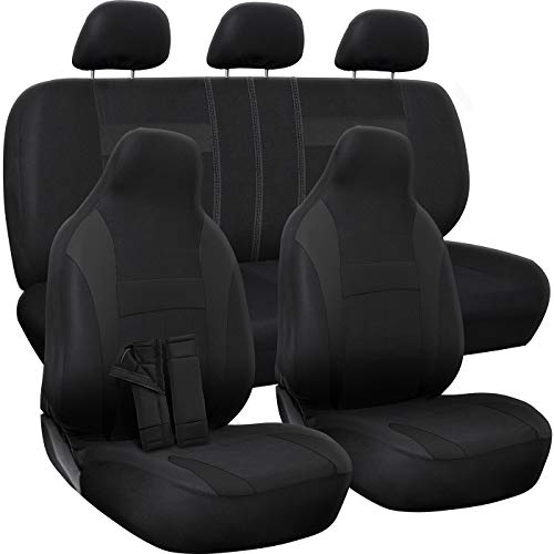OxGord Car Seat Cover - Poly Cloth Solid Black with Front Low Bucket and 50-50 or 60-40 Rear Split Bench - Universal Fit for Cars, Truck, SUV, Van