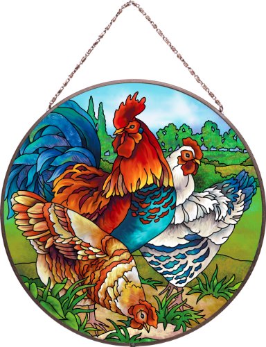 Joan Baker Design AP4014R French Country Roosters Glass Art Panel, 10-Inch