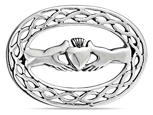 Oval Claddagh Heart Celtic Knot Work Scarf Brooch Pin For Women 925 Silver Sterling
