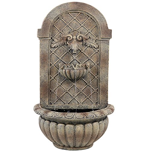 Sunnydaze Venetian Outdoor Wall Fountain, Florentine Stone, 28 Inch