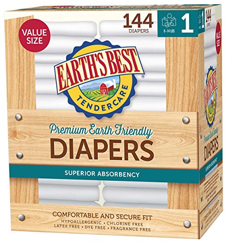 Earth's Best TenderCare Chlorine-Free Disposable Baby Diapers, Size 1 (8-14 lbs), 144 Count