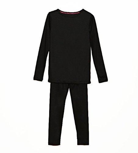 Cuddl Duds Girls Long Sleeve Crew Neck and Pant Thermal Set-Black, M (7-8)