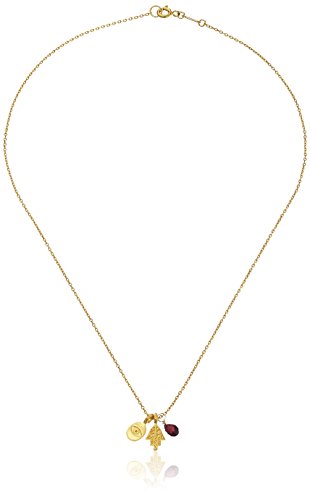 Satya Jewelry Red Garnet Gold Plated Mini Hamsa Eye of Protection Charm Necklace, 18 inches