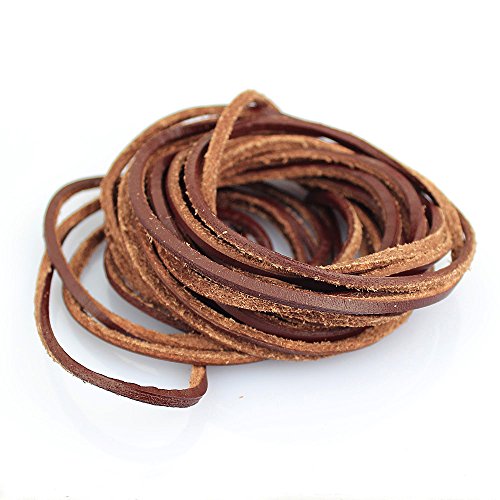 LolliBeads (TM) 3mm Flat Genuine Leather Cord Braiding String Light Brown (5 Yards)