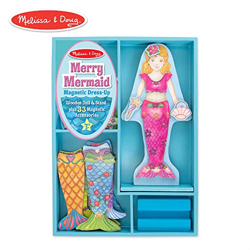Melissa & Doug Merry Mermaid Wooden Dress-Up Doll and Stand - 33 Magnetic Accessories