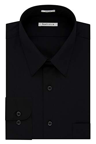 Van Heusen Men's Poplin Regular Fit Solid Point Collar Dress Shirt, Black, 18" Neck 36"-37" Sleeve