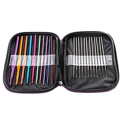 DTOL 22 Pcs Mixed Aluminum Handle Crochet Hook Knitting Knit Needle Weave Yarn Set