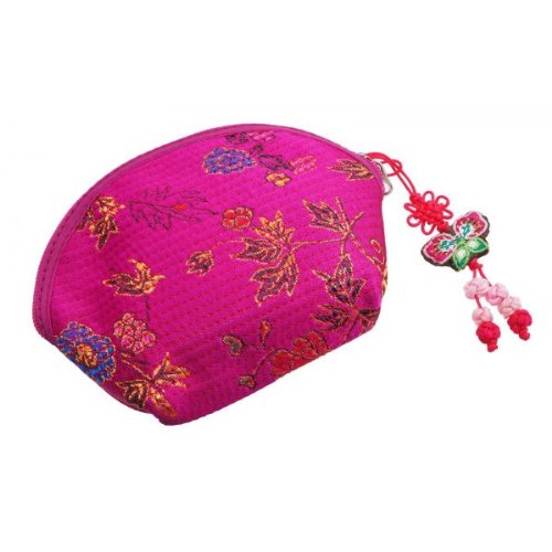 Small Half-moon Design Fabric Wallet Made of Korean Traditional Colorful Fabric. Fine Embroidery of Flower. Zipper Closure. Good Quality. Durable.