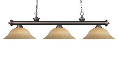 Z-Lite 200-3OB-GM16 Riviera 3 Light Billiard, Steel Frame, Olde Bronze Finish and Golden Mottle Shade of Glass Material