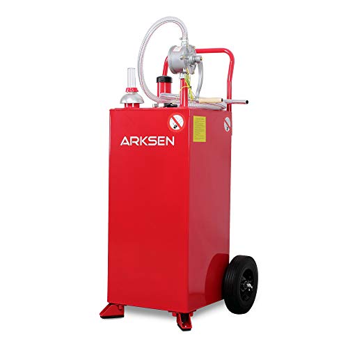 Arksen 30 Gallon Portable Gas Caddy Fuel Storage Tank Large Gasoline Diesel Can Hand Siphon Pump Rolling Pneumatic Wheels Boat ATV Car Motorcycle