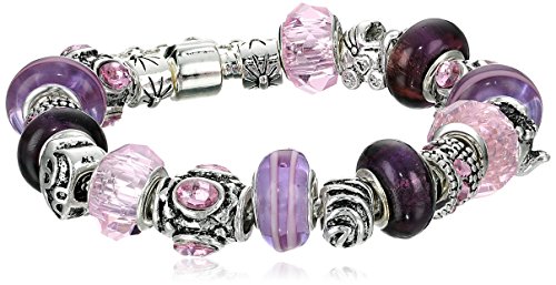 Mothers Day Gifts Silver-Tone Purple Glass Beads Complete Full Charms Beaded Bracelets Jewelry