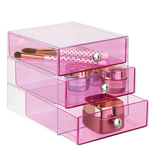 iDesign Plastic 3-Drawer Jewelry Box, Compact Storage Organization Drawers Set for Cosmetics, Dental Supplies, Hair Care, Bathroom, Office, Dorm, Desk, Countertop, 6.5" x 6.5" x 6.5", Pink