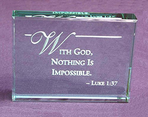 Luke 1:37 Bible Verse: Hand Etched Glass Paperweight