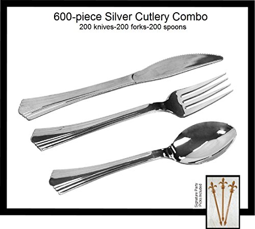 200 Sets Reflections Like Silver Plastic Silverware, Cutlery Combo of 600 Pieces Includes 200 Forks, 200 Knives, 200 Spoons