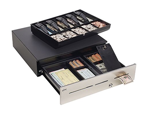MMF Industries POS Advantage Cash Drawer for US Currency with Stainless Front and Removable Tray, LockIt Feature and Kwick Cable, 16.7 by 4.7 by 18-Inch, Black (ADVINABOXUS04)