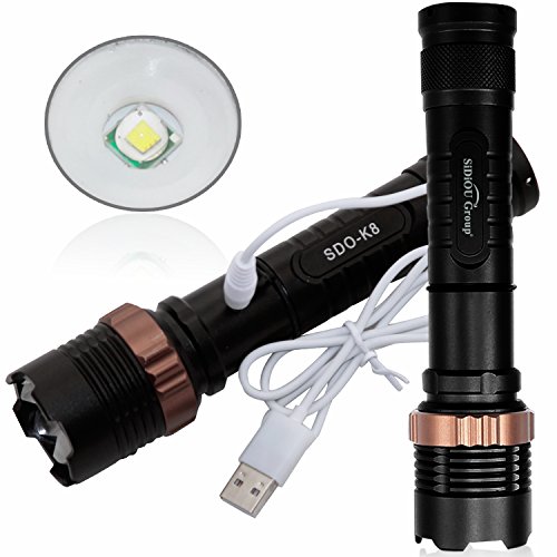 Sidiou Group CREE XM-L T6 LED 1800Lm Zoomable USB Charger Flashlight Torch Zoom Lamp With 1x18650 Rechargeable Battery+USB Cable+Bicycle Bracket